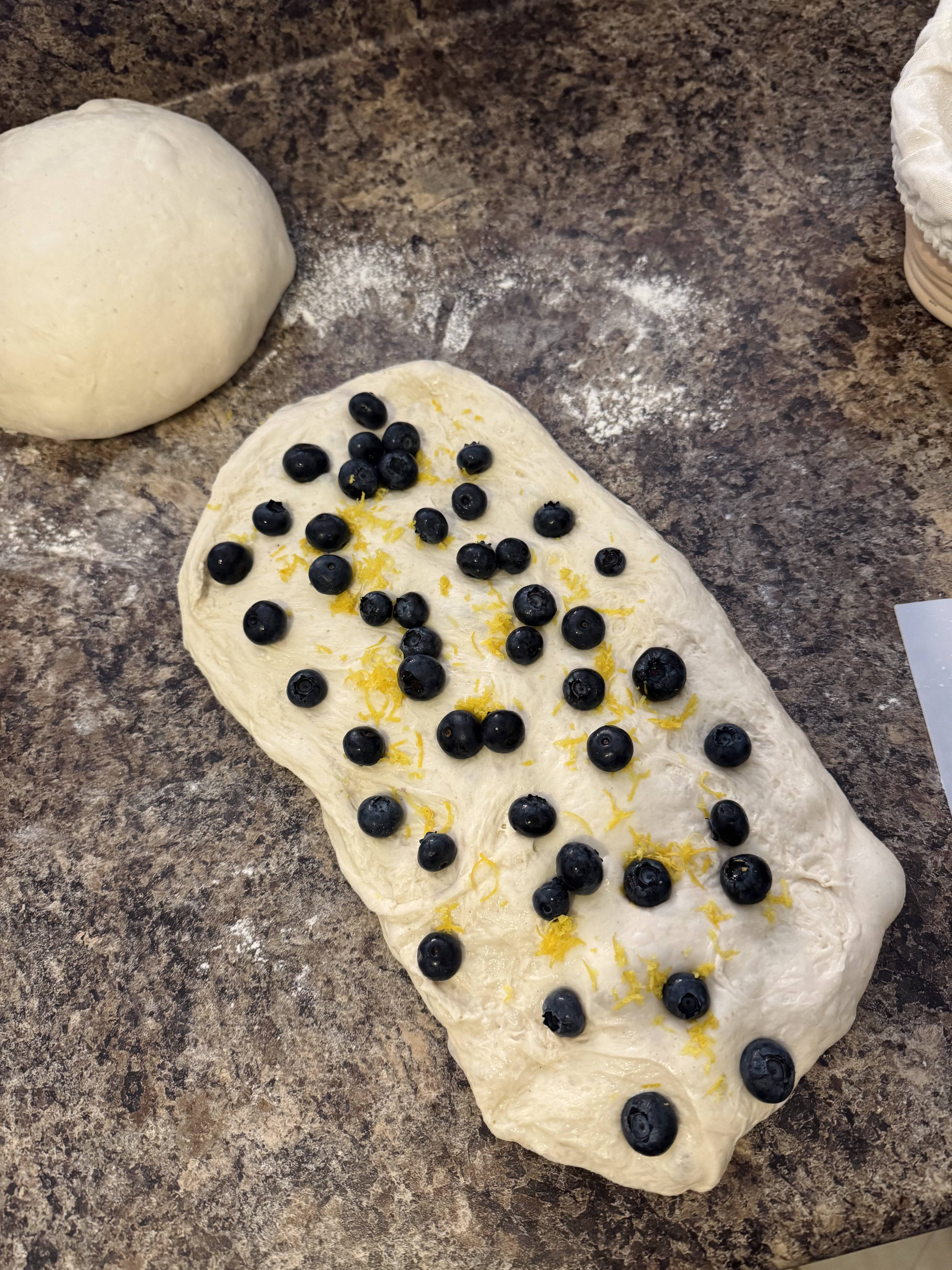 This speciaBlueberry lemon sourdough loaf is a bright, flavorful bread combining the tang of sourdough with bursts of sweet blueberries and a hint of zesty lemon. It has a golden crust, tender crumb, and a refreshing balance of fruity and citrus notes—perfect for breakfast or a light afternoon treat.