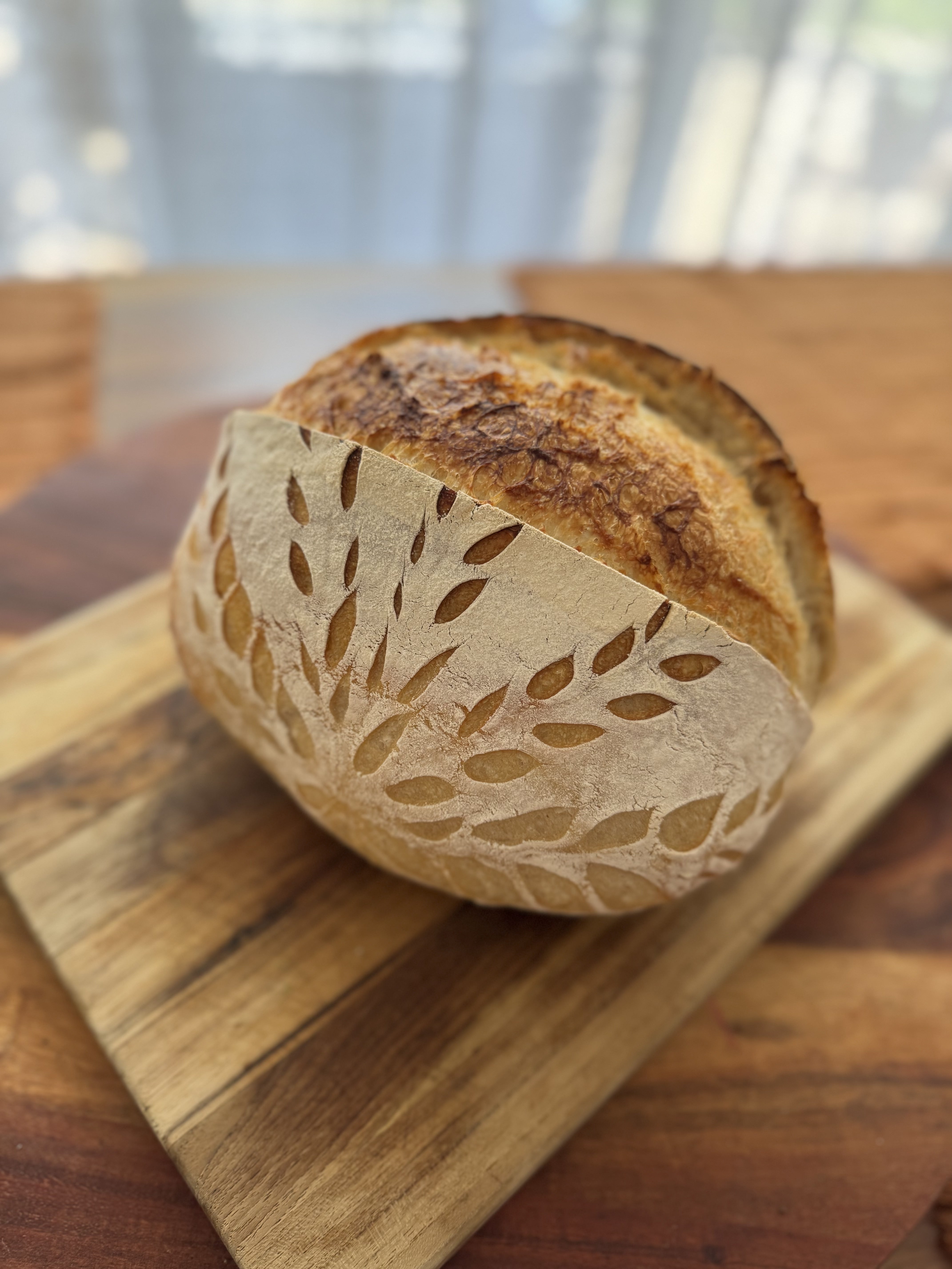 Plain sourdough bread is a simple, naturally leavened loaf with a crisp crust, chewy texture, and a mildly tangy flavor. It’s hearty, wholesome, and perfect for everyday use—from sandwiches to toast.